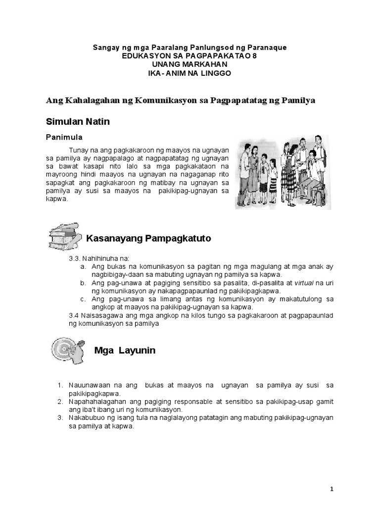 Esp8 Q1 Week6 Ang Kahalagahan Ng Komunikasyon Sa Pagpapatatag Ng Pamilya Pdf Pdf